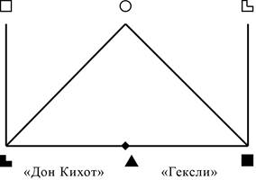 Следующий вид отношений – родственные. Такие симметричные отношения у типа ИМ «Дон Кихот» с типом ИМ «Гексли». Рассмотрим их по методу качественных структур (рис. 17).