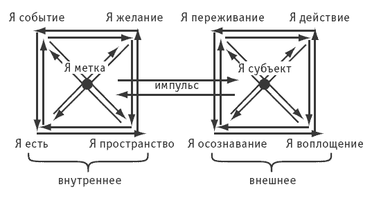 Изобразим описание структуры самосознания, позволяющей человеку встать в активную позицию по отношению к миру, то есть действовать как во внутренней, так и во внешней реальности (рис. 7).