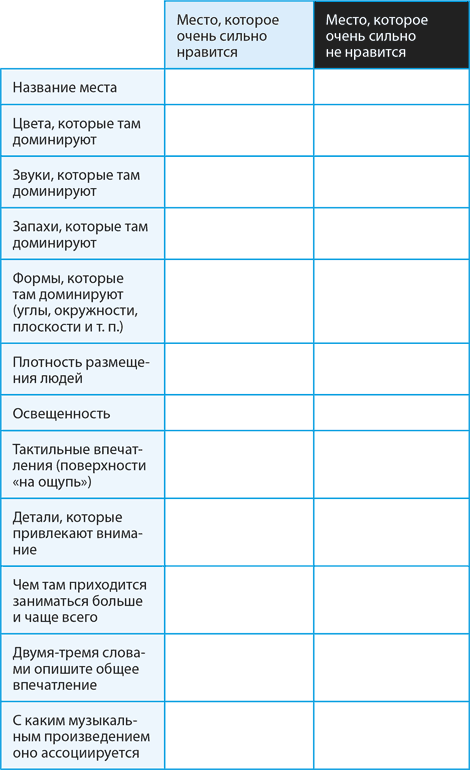 А теперь попробуйте вспомнить место, где вы любите бывать. Вспомните по-новому. Вспомните пространство. Ощущения. Впечатления. И припомните место, после посещения которого вы чувствуете себя усталым, недовольным, раздраженным.