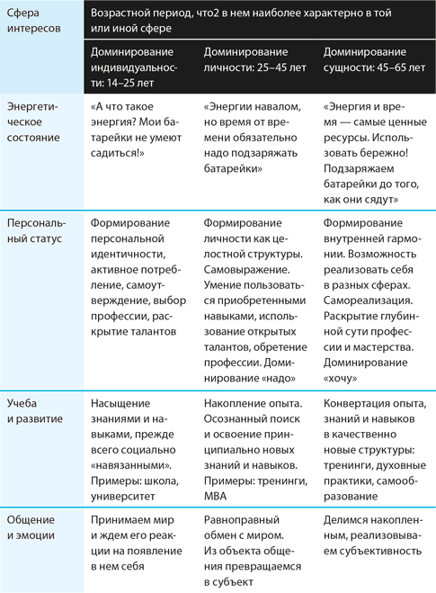 В каждом из возрастных периодов мы располагаем разными запасами той или иной энергии.