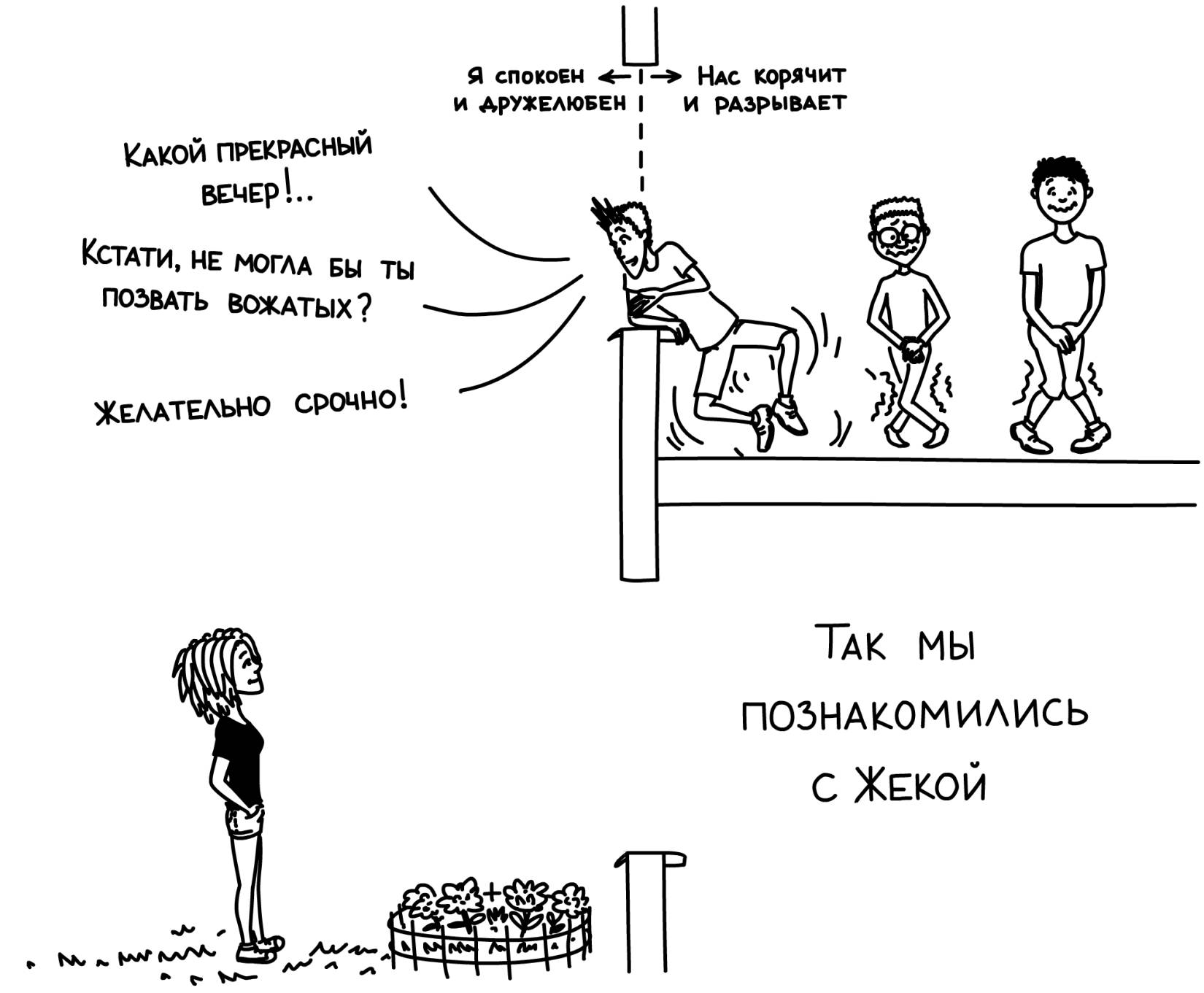 Впрочем, мне было не до разглядываний. Включив максимально дружелюбный и спокойный голос, я попросил её просто позвать «вожатых». Потому что они забыли нас выпустить. А нам уже ОЧЕНЬ-ОЧЕНЬ надо. Иначе мы сейчас лопнем тут.
