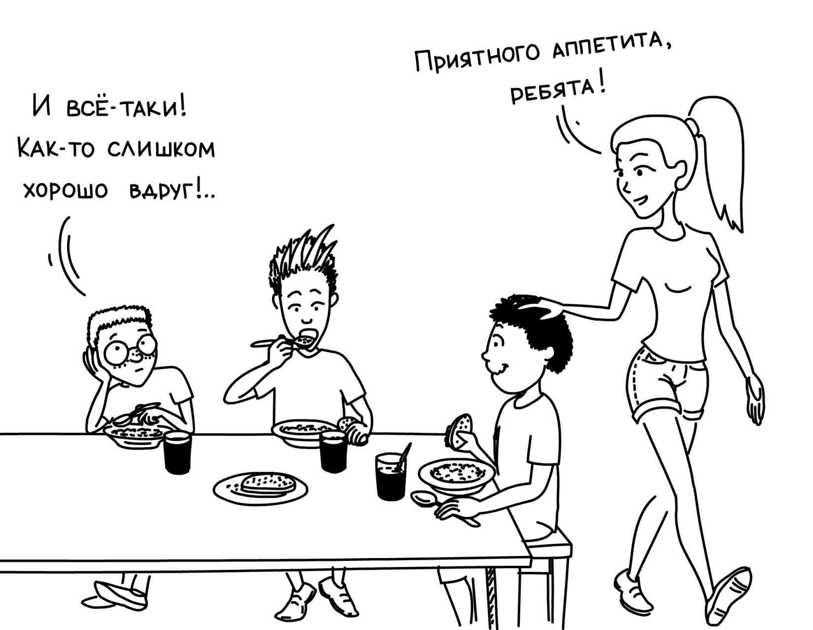 Но в моём сознании тревожно полыхнула мысль, что ГДЕ-ТО здесь подвох. Это всё неспроста. Мой мозг кричал, что пища, скорее всего, отравлена специальными токсинами. Что опыты над нами наверняка УЖЕ начались. Но я просто не мог остановиться. Я никогда не ел такой вкусной овсянки!