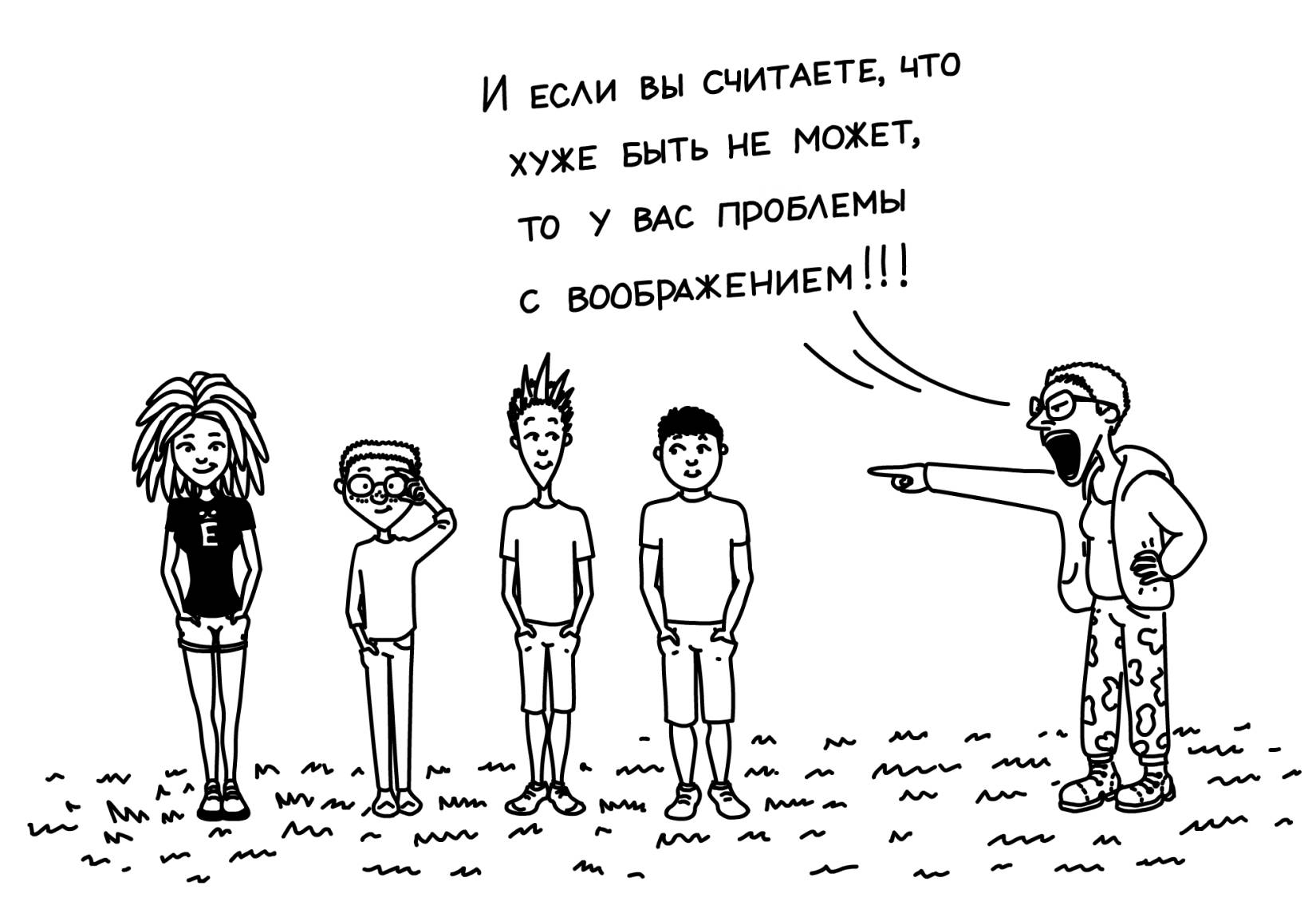 Когда я перестал внутри головы снова обзывать себя разными словами, то Мира уже рассказывала про наши ближайшие планы. Вроде бы говорила, через неделю начнутся какие-то «Суровые Игры». А потом – финальные соревнования. И мы должны быть сильными, умными и дружными, если хотим победить. Или хотя бы ВЫЖИТЬ.