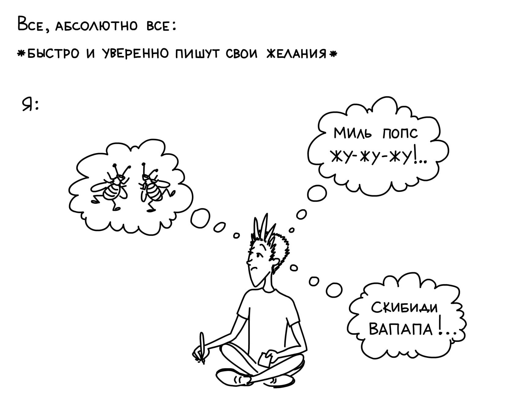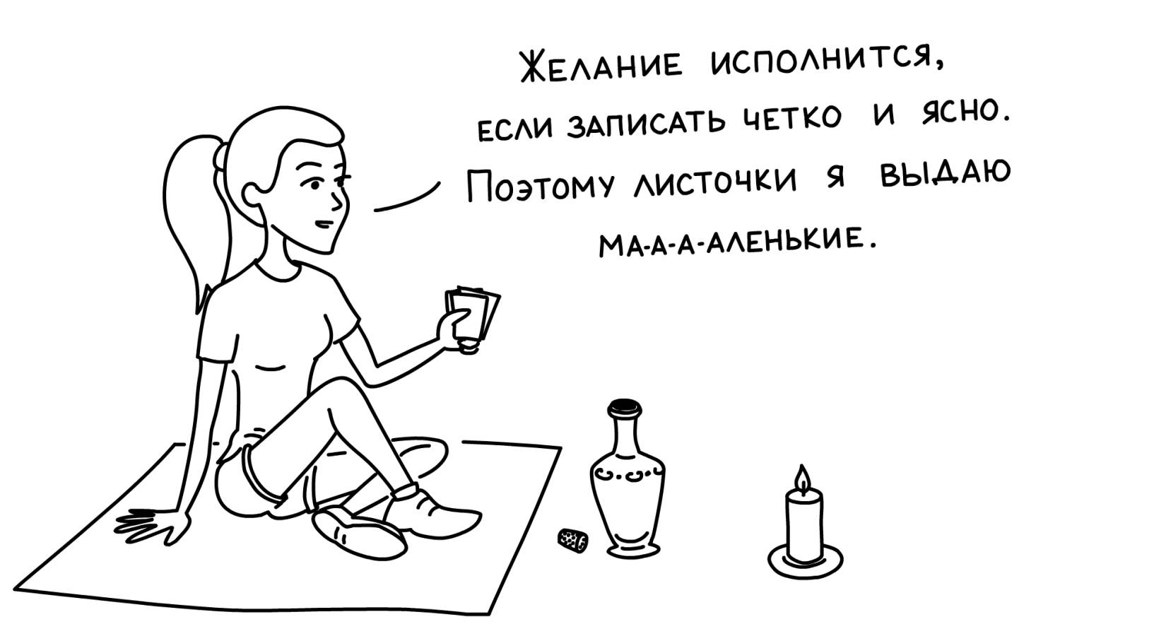 Жека уверенно свернула свой листочек и кинула его в бутылку. Потом и Ромыч (хм, интересно, что он там придумал?). Вслед потянулись остальные. А я всё сидел и тупил.