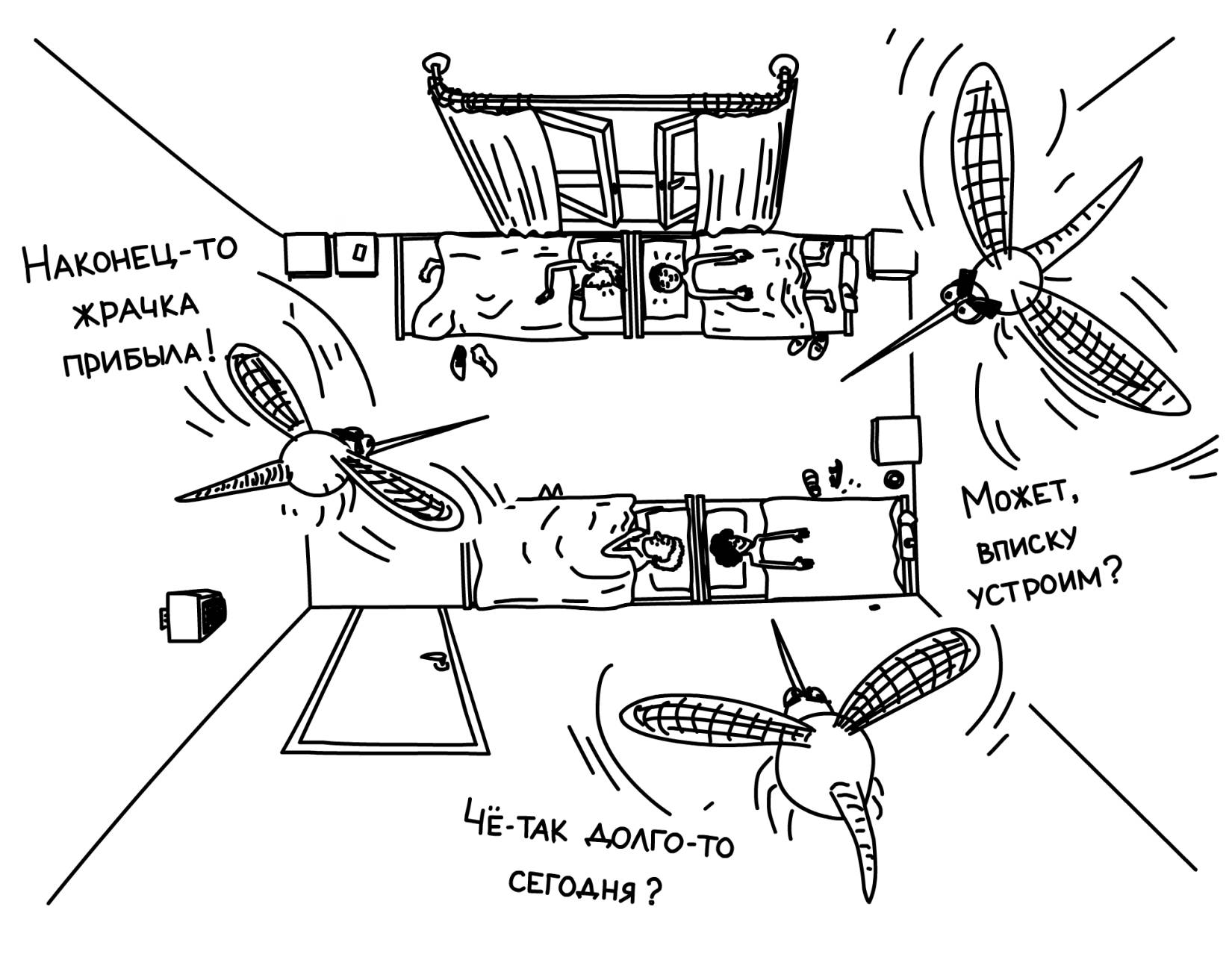 В общем, было много криков. Пока притопала недовольная врачиха, центрифуга как раз остановилась. Серо-зелёного Ромыча кое-как достали из капсулы. Принялись оживлять.