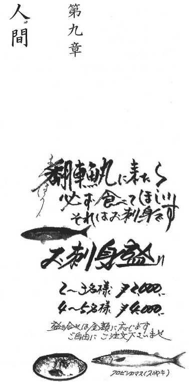 – さて明日はどうだったかしら? 寝坊しては だめね。酒井さんに渡す名刺を印刷所まで取りに行か なくちや。そのあとどうしょうかしら? お客はほと んど来ないし。何かを変えていかないと。でも何を?