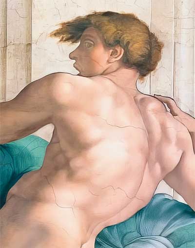 Без всяких оговорок и скидок, ибо не только форма, не только силуэт, рисунок, пластика потрясают в этих росписях, но и колорит, и прежде всего удивительный микеланджеловский валер – тончайшее чувство светотени и тона.