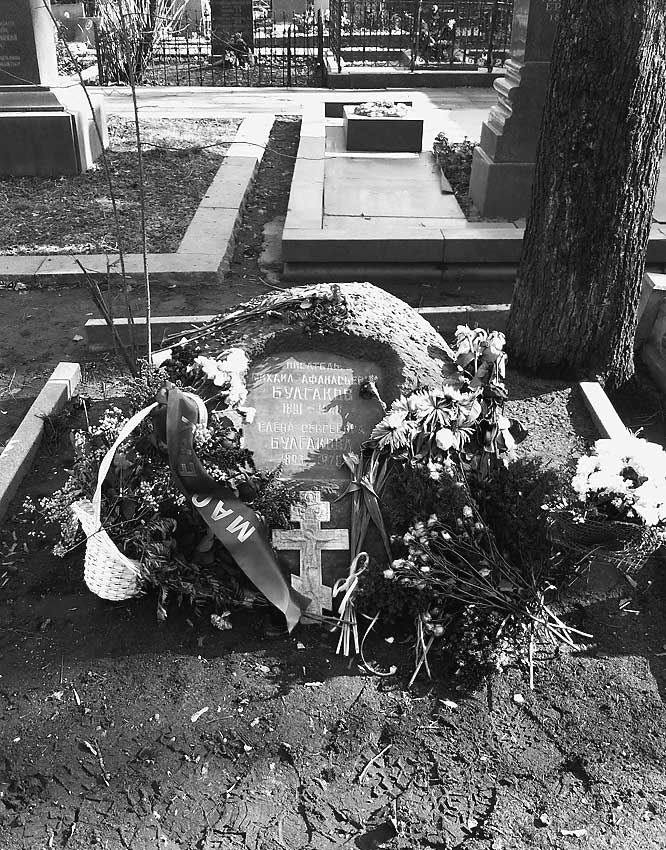 На могиле Булгакова лежит небольшой камень. Когда Елена Сергеевна только стала искать надгробие для памятника мужу, ей сказали, что ничем помочь не могут. Но если она хочет, то может посмотреть старые надгробные камни. Тогда в Москве вовсю шло перезахоронение. Несколько могил из Даниловского монастыря перенесли на Новодевичье кладбище. Установили новые памятники, а старые выбросили.