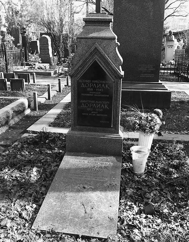 Мраморное надгробие семьи Дорлиак. Бывшая фрейлина императрицы Ксения Николаевна (1881–1945) после 1917 года преподавала в московской консерватории. И вошла в историю, главным образом, как мать народной артистки СССР Нины ДОРЛИАК (1908–1998).