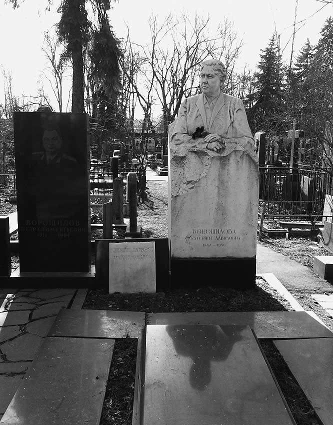 Прямо за могилой матери и жены Буденного – захоронение близких другого легендарного сталинского маршала – Ворошилова. Сам Климент Ефремович, как и Семен Буденный, похоронен в Кремлевской стене. А на Новодевичьем – его жена Екатерина Давидовна (1887–1959).