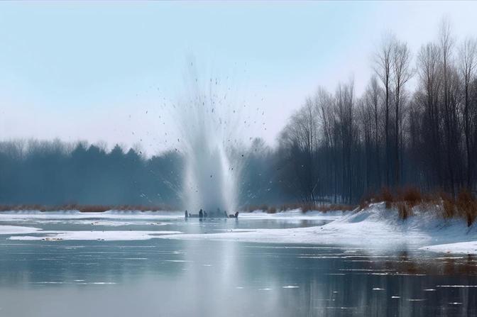 В третий заход я уже не был аккуратным. Грубо пробил лед. Мне показалось это недостаточным, и я обломал кромку проруби. Наплескал воды. Погрузился глубже, и поднял на поверхность целый фонтан. Вернулся и с удовольствием воззрился на прорубь.