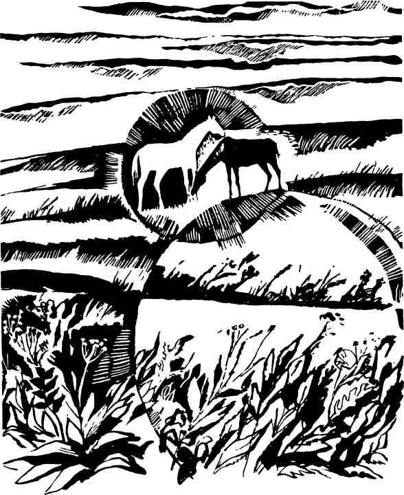 Уставшая на подъеме, легла на клевер вороная. Поймав ее выжидательный взгляд, прилег и Фаворит. И словно укрыла их, лежащих на открытой вершине, тишина, поразив Фаворита тем, что была она звучная. Едва уловимо шелестела трава, шуршала, будто осыпалась, почва, и сам воздух, казавшийся неподвижным, тонко звенел в незаметном движении. Земля входила в Фаворита, наливая его приятной прохладной тяжестью.