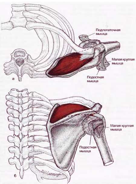 Широчайшая мышца спины, большая круглая мышца и нижние волокна большой грудной мышцы могут действовать как антагонисты надостной мышцы.
