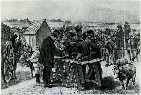 Луи Пастер проводит свой знаменитый публичный эксперимент по вакцинации овец против сибирской язвы (1881 г.).