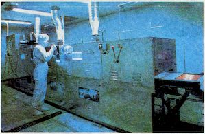 Это отнюдь не лаборатория в космосе, а установка для иммобилизации живых дрожжевых клеток на полимерных материалах. Здесь стерильные условия – главное и обязательное требование, поэтому японские служащие надевают защитную одежду.