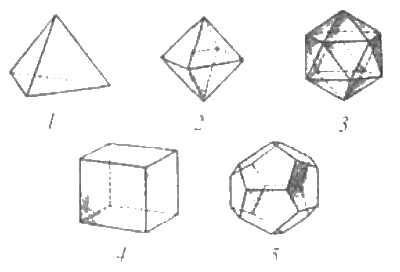 1 – тетраэдр; 2 – октаэдр; 3 – икосаэдр; 4 – куб; 5—додекаэдр