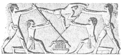 Рис. 2.23. Усовершенствованный фильтровальный мешок, концы которого удерживаются на раме. (Рисунок из древнеегипетского захоронения в Бени-Хасан, ок. 1500 года до н. э.)