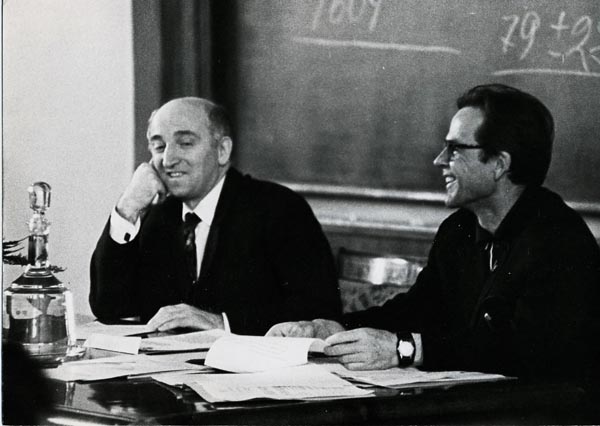 Ю.Б. стал читать в НГУ курс термодинамики и статистической физики. Вдвоём с Моисеем Соломоновичем (М.Ш.) Рывкиным они написали очень хороший учебник, им пользуются и современные студенты НГУ. Некоторые их методические находки кажутся мне очень удачными (к их числу я отношу определение термодинамической энтропии как некоторого «номера» адиабаты). Общение с этим участником классического героического периода физики было чрезвычайно благотворно для нас – научной молодёжи, для студентов и учеников ФМШ.