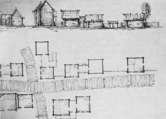 А. Монгайт высказывает мнение о наличии в средневековом Новгороде больших незастроенных площадей, использовавшихся под сады и огороды [64, стр 11]. Для них были отведены участки, примыкающие к острогу.