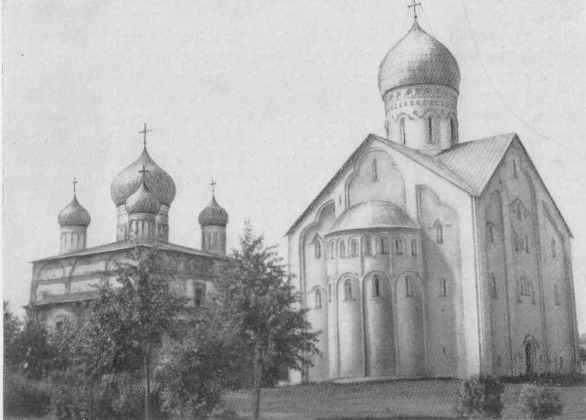 Можно без преувеличения сказать, что все окружающие Новгород холмы были захвачены монастырями. На высоком холме в трех километрах от Новгорода, за Малым Волховцом, возник Ковалевский монастырь, от которого сейчас остались лишь руины. Сама церковь Спаса на Ковалеве была построена в 1345 году. Вблизи сохранились руины и другой церкви – Успения на Болотове, построенной в 1352 году. В самом городе в 1292 – 1294 годах на месте более древней постройки была сооружена церковь Федора Стратилата «на Щиркове улице». Она сохранилась до настоящего времени, но верхняя ее часть относится к 1682 году. По плану эта церковь напоминает церкви второй половины XII века.