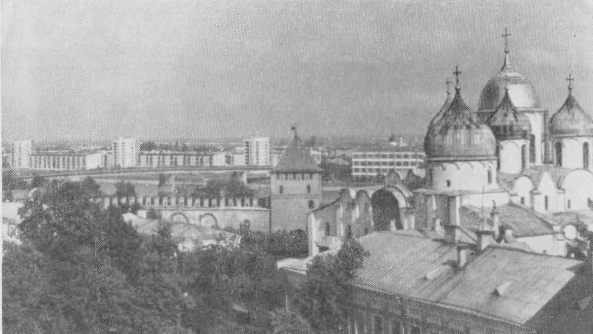 Этим, однако, не исчерпываются архитектурно-художественные вопросы градостроительства в послевоенной реконструкции Новгорода. Старое выступает здесь в единстве с тем, что рождает развитие живущего полнокровной жизнью советского города. Пространственная взаимосвязь важнейших архитектурных комплексов, сочетание новых общественных центров со сложившимися ранее, органичное включение памятников архитектуры в современную застройку города – вот основные проблемы, решение которых способствует приданию Новгороду только ему присущего облика.
