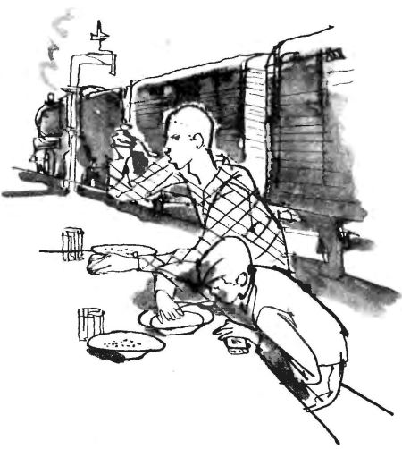 Он спрыгнул с высокого перрона, бережно прижимая к груди авоську с бутылками, пролез под одним составом, под другим…