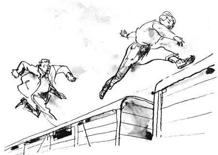 Он пробежал сколько-то, потом подумал, что Генка может увидеть его ноги, и забрался наверх, между вагонами.