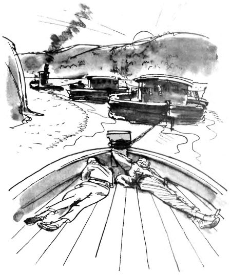 Они только-только устроились, улеглись на тёплую палубу, как послышались приглушённые голоса, мягко зарокотал вдалеке двигатель – ожил буксир, запряжённый в связанные баржи, как конь в телегу.