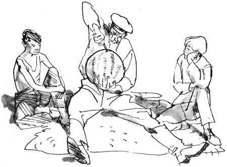 Мальчишки присели на корточки и разглядывали старика.