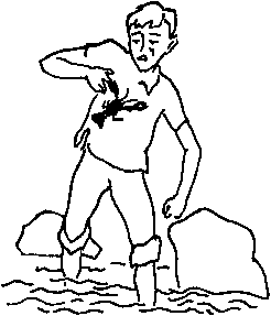 У берега по колено в воде бродили трое незнакомых мальчишек с вилками в руках. Они шарили под валунами. Нащупают голой рукой рыбёху, та забьётся в щель – скользкая, пальцами не за что ухватить. Тогда они её вилкой р-раз! И готово!