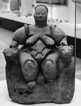 Вот статуэтка «Великой Богини» из Чатал-Хююка – на троне в окружении леопардов (около 7500 года до н. э.):
