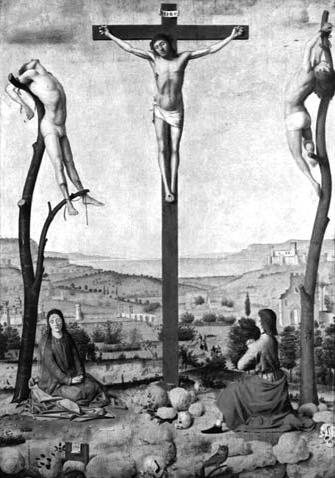 Антонелло да Мессина. Распятие с Марией и Иоанном. 1475 год