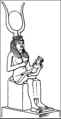Рога мы видим также у статуэтки Изиды, кормящей младенца – бога Хора, своего сына: