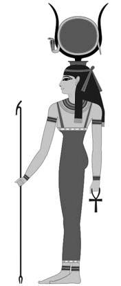 Головной убор Изиды здесь – это головной убор богини Хатхор. В древнейшие времена Хатхор почиталась как небесная корова, родившая солнце. Что касается солнца между рогами – то оно идентично кресту, так как крест не только означает Мировое Древо, но это еще и древний символ солнца (один из его вариантов – свастика). Посмотрите также на знак жизни анх в руке у Хатхор (круг и крест). Солнце между рогами – это еще и свернувшаяся змея.