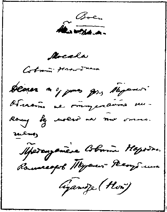 Автограф письма С. Г. Буачидзе в Совнарком РСФСР.