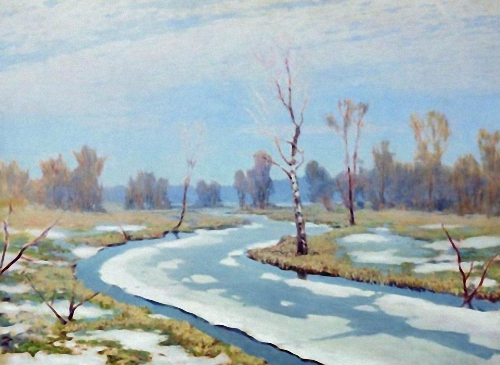 «Север» представляет собою последнее – прощальное,так сказать – произведение… Этой картиной Куинджи как бы расстается с северной природой, чтобы никогда уже к ней не возвращаться… Тона здесь – опять те же, что в картинах начального периода; но интересно, что эта «прощальная» вещь дает как бы итог,как бы символическое резюме северной природы…Да и написана она уже в очень обобщающей манере. Она изображает вид с высоты на равнину, уходящую в бесконечную даль. Дымчатое сероватое небо, дымчатые сероватые горизонты. Перспектива, огромный простор неба и земли действительно дают впечатление «безбрежного океана пространства», как выразился один критик… Великая, плоская, грустная равнина под серым небом разве это, и вправду, не схеманашего севера!..Тут и широта размаха, и «стелющееся» бессилие, и величавая мечта, смело стремящаяся к бесконечному и абсолютному, и бесконечное же бледное уныние, и надрыв, и тоска… Все критики в один голос отмечали глубокую поэзию, заложенную в этом пейзаже-символе…