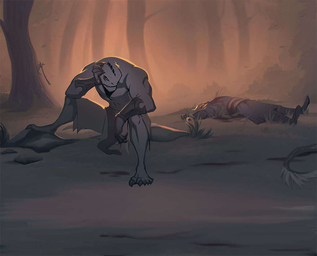 Смерть ляока редко кого-то трогает. Даже собратьев, а вот смерть эллина или важного ящера вполне может привести к неприятным последствиям. Причем неприятным, в первую очередь, для честных трудяг вроде того же Ларака. Отморозки все-таки и так живут, наплевав на закон.