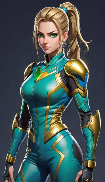 Милана в сине-бирюзовом, с золотой окантовкой. А Инга в тёмно-зелёном, с чёрными защитными пластинами.