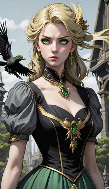 Надо сказать, красотой эта мадама точно не была обделена. Змеиные глаза сияли тёмными изумрудами с янтарными крапинками. Маленький чуть вздёрнутый нос, нежные розовые губы, тонкая шея.