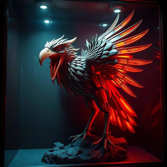 Первой я обнаружил ту, что с «чучелой в окне». Окно оказалось огромной витриной, а «чучела» – расправившей крылья гигантской птицей. Хищный клюв был приоткрыт в крике, а когти были такими, что другого оружия птичке и не было нужно: затопчет и не заметит. Но она в прямой бой вступала редко, в основном противников прицельно обстреливала перьями, имеющими прочность металла.