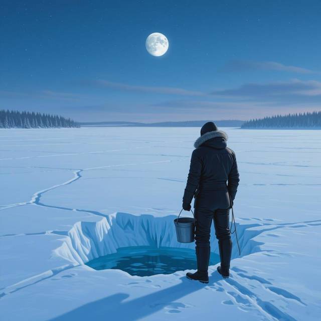 В полынье вода виделась совсем черной, она не казалась мутной и вязкой, как это было на озере Мятном, но ведро пропало из видимости очень быстро. Ориентироваться приходилось исключительно по натяжению веревки.