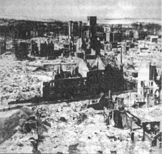 Полностью разрушенный в результате авианалета 22 марта 1945 года Хильдесхейм.