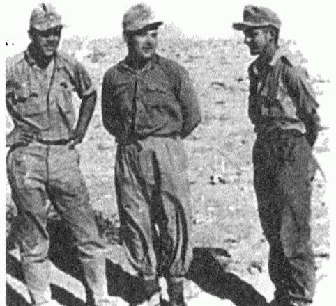 Роммель, к великому неудовольствию своих штабистов, руководил боем с передовой. Нередко он носился над барханами на самолете «Физелер шторьх», желая лично осмотреть оборонительные позиции противника. Когда наступление замерло, он все равно не уходил с передовой и бросал в бой подчиненную непосредственно ему ударную группировку. Роммель всегда появлялся на самых ответственных участках, и его присутствие поднимало боевой дух личного состава. Временами он словно из-под земли вырастал в пустыне на своем вездеходе где-нибудь под Бир Хахеймом. Нас переполняло чувство гордости, что наше боевое крещение произошло именно на глазах командующего группировкой.