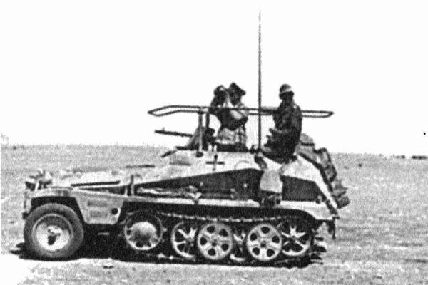 Колеса наших пушек состояли из совершенно отдельных камер. И если орудие вдруг начинало прыгать во время движения, приходилось останавливаться – орудие должно было отправляться в ремонт. Каким-то образом, уж и не помню, при каких обстоятельствах, нам достался британский гусеничный транспортер на 7 человек. И мы сидели, забившись в него, как куры на насесте, – лейтенант, унтер-офицер и рядовой состав. А под полом, хоть и прикрытый кожухом, располагался раскаленный двигатель. Вот так и передвигались по пустыне.
