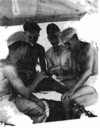 Убиваем время за картами, справа унтер-офицер Ябек.