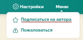 Это можно сделать не выходя из читалки, нажав на Меню в правом верхнем углу, или три точки на мобильной версии и подписаться на автора.