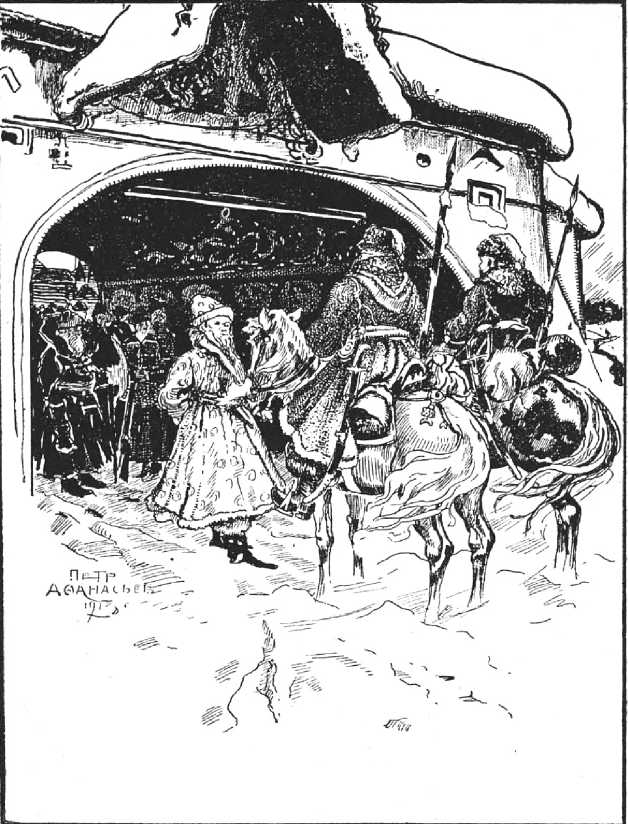 Из-под арки выступил человек в московском казакине, обшитом по подолу серебряным позументом, и подпоясанный наборным серебряным поясом.