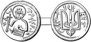 • Тризуб был официальной эмблемой киевских князей, поэтому его чеканили на монетах, изображали на картинах, фресках, фарфоре и т.д. Первое достоверное изображение тризуба можно найти на исторических документах – князь Киевской Руси Игорь в начале X века скрепил договор с Византийской Империей печатью с трезубцем. С 1992 г. тризуб является национальной эмблемой и включен в государственный герб Украины.
