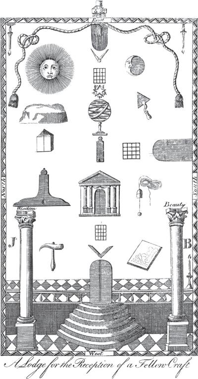 На знаменитой фреске Джордж Вашингтон в полном масонском облачении стоял перед диковинным устройством: огромным треножником с подъемным блоком и висящим на нем большим камнем. Вокруг Вашингтона собралась толпа хорошо одетых людей…
