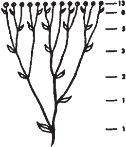Распределение листков тысячелистника по последовательности Фибоначчи